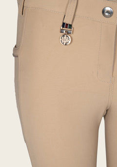 With a flattering mid to low rise and a sock bottom for a perfect fit, this breech is ideal for hunter ring, equitation, and traditional jumper riders. Available in the perfect tan color to complement your show wardrobe.