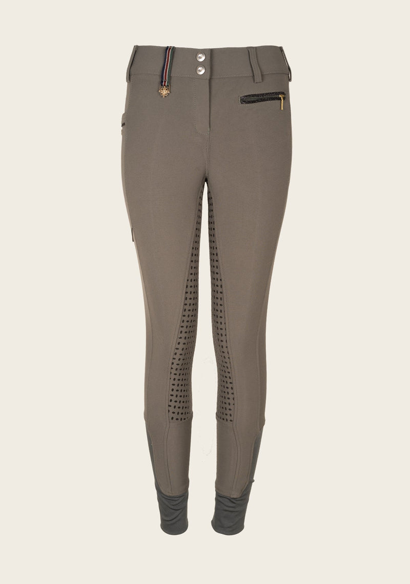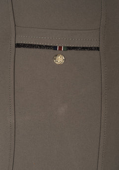 Crafted from breathable, stretch fabric, the breech offers all-day comfort, a mid-to-low rise fit, and a soft sock bottom that eliminates pressure points under boots. Tone-on-tone glitter zips, slimming stitch lines, and the signature crossed back belt loop in Espoir colours complete the look with subtle sophistication.