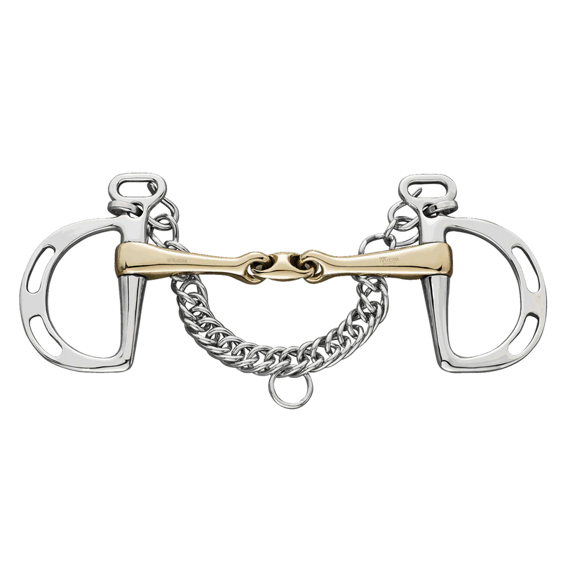The KK Ultra Kimblewick from Herm Sprenger features a 16mm Sensogan mouthpiece and stainless steel cheeks, offering a unique blend of leverage and lateral control. The KK Ultra design incorporates a center link that lies smoothly across the tongue, enhancing communication and reducing pressure points.