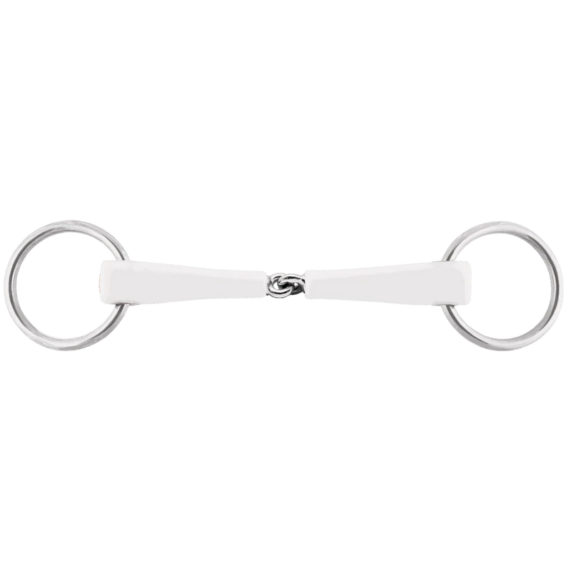 NATHE loose-ring snaffle bit with a 20 mm single-jointed mouthpiece and 55 mm rings. Designed for a fuller, cushioned feel.