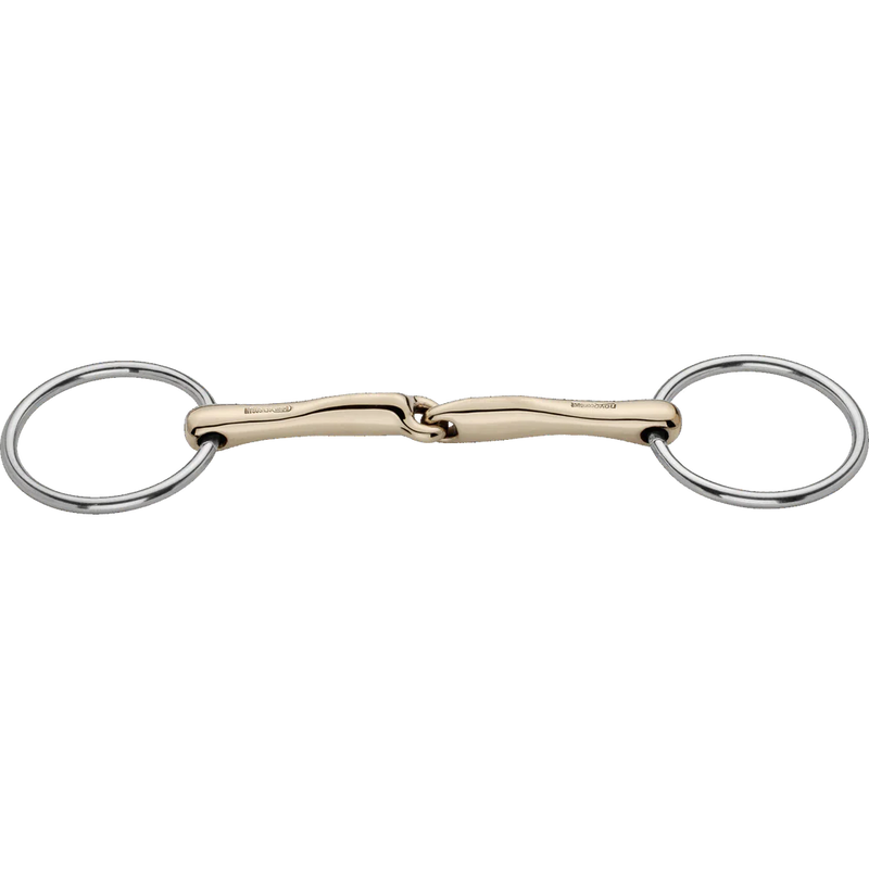 Novocontact loose-ring snaffle bit with a 14 mm single-jointed Sensogan mouthpiece and 70 mm stainless steel rings.