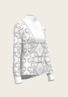 Available in classic formal white and a range of hand-illustrated prints, each shirt offers a tailored fit that moves with the rider while maintaining a polished silhouette. Ideal for hunter, jumper, and equitation riders seeking elevated show-day apparel with breathable comfort and timeless elegance.