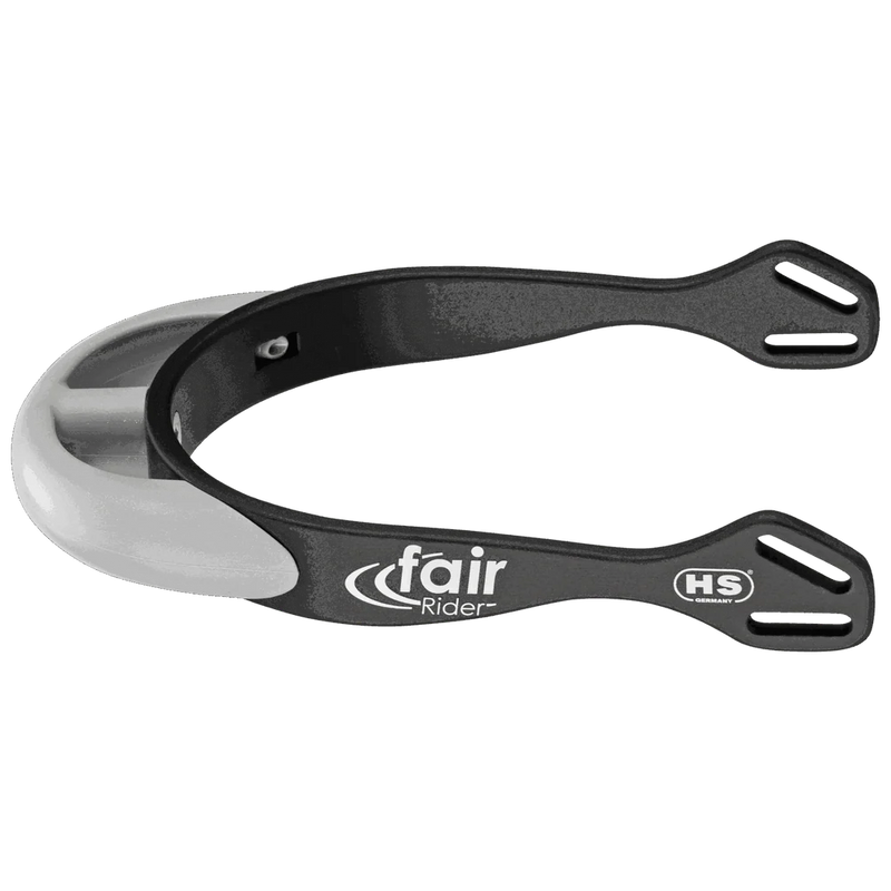 The Herm Sprenger FairRider Spurs – 20mm Rounded Neck, Black Aluminum with Silver Neck are designed for gentle, effective communication with sensitive horses or those new to spurs.