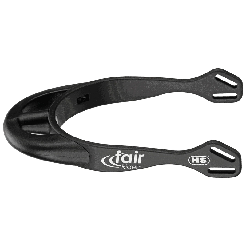 Part of the FairRider series, these spurs feature a thick, rounded 25mm neck that provides a broad, smooth contact surface, reducing pressure and preventing coat irritation. The lightweight black anodized aluminum body and arched black plastic neck ensure a secure, ergonomic fit while maintaining a sleek, modern look.