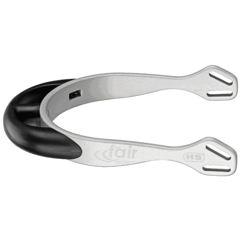 The Herm Sprenger FairRider Spurs – 20mm Rounded Neck, Silver Aluminum with Black Neck are designed for gentle, effective communication with sensitive horses or those new to spurs.