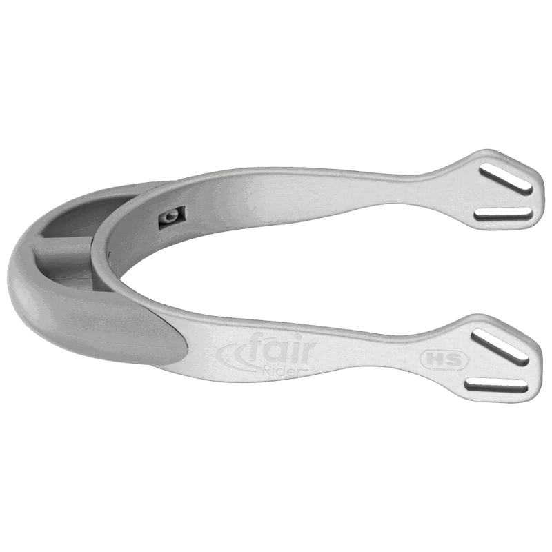 The Herm Sprenger FairRider Spurs – 20mm Rounded Neck, Silver Aluminum with Silver Neck are designed for gentle, effective communication with sensitive horses or those new to spurs.