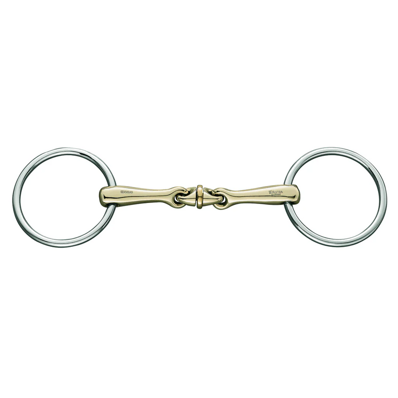 WH Ultra snaffle bit with an 18 mm Sensogan mouthpiece and 70 mm stainless steel rings. Designed to support stable contact and even pressure distribution.