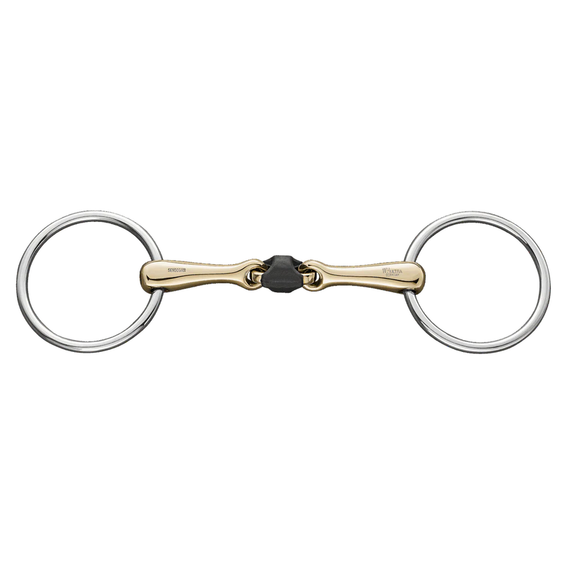 WH Ultra Soft snaffle bit with a 16 mm Sensogan mouthpiece and 70 mm stainless steel rings. Designed to offer a softer feel while maintaining stability.